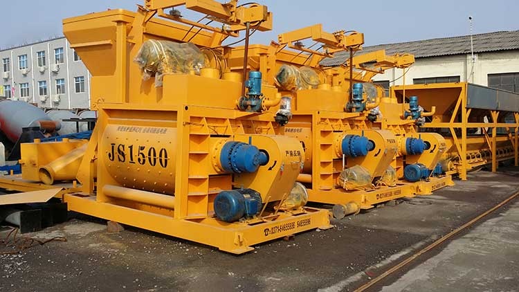 JS1500双卧轴强制式混凝土搅拌机由上料、搅拌、卸料、供水、电气、罩盖、底盘、支腿等部分组成。